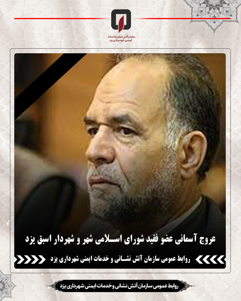 اينجانب به نمايندگي از پرسنل سازمان آتش نشانی و خدمات ایمنی شهرداری یزد درگذشت آن فقيد عزیز را به شوراي اسلامي شهر، مردم شريف شهر یزد و به ويژه خانواده داغدار ايشان تسلیت عرض نموده و از درگاه احدیت برای آن مرحوم مغفور رحمت واسعه و برای بازماندگان صبر و اجر مسالت میکنم.