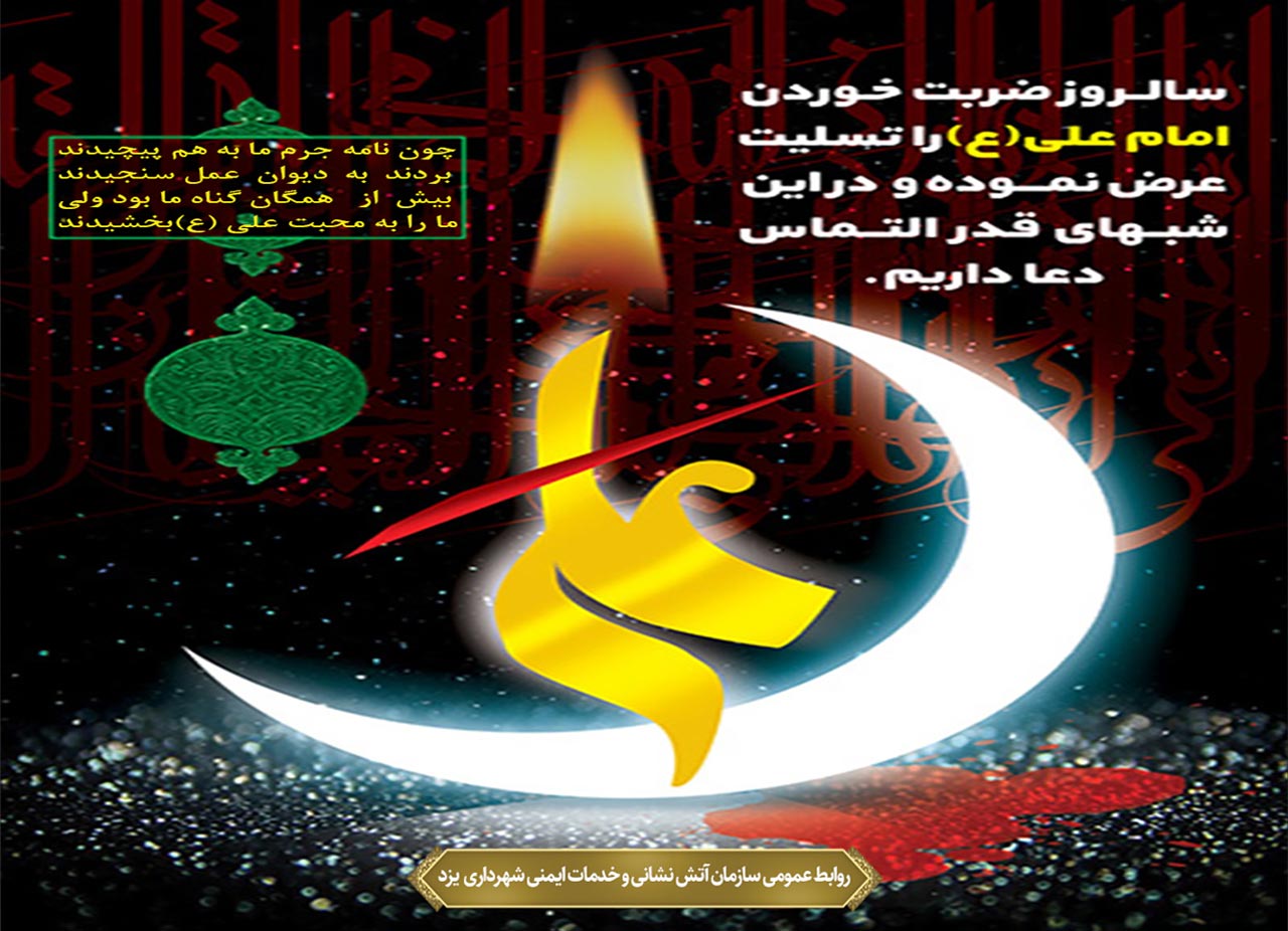 سالروز ضربت خوردن امام علی (ع) را تسلیت عرض نموده و در این شبهای قدر التماس دعا داریم. - سازمان آتشنشاني و خدمات ایمنی