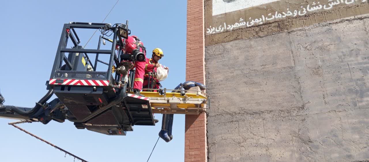 تمرینات و بازآموزی آتش نشانان ایستگاه شماره ۵ سازمان آتش نشانی و خدمات ایمنی یزد در نجات مصدوم فرضی از ارتفاع و انتقال وی به منطقه امن انجام شد.