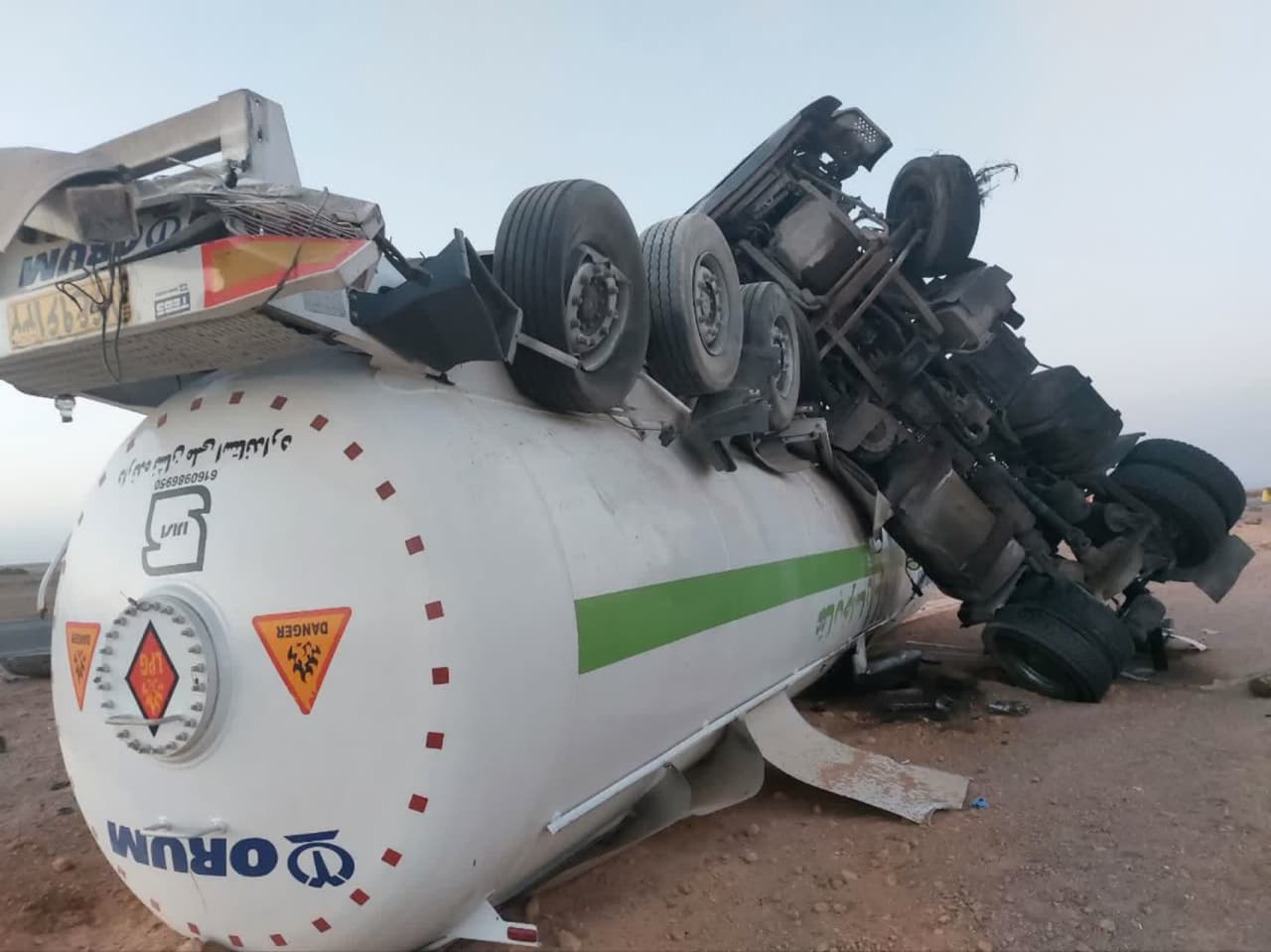امدادرسانی آتشنشانان یزدی به تریلر حمل گاز واژگون شده در محور دهشیر - سازمان آتشنشاني و خدمات ایمنی