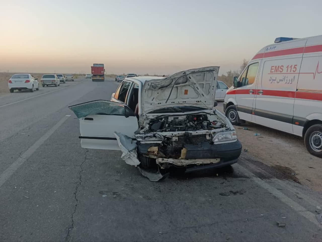 آتش نشانان یزدی با اعزام به محل تصادف دو خودروي پراید و پژو در ورودی روستای خویدک، نسبت به رهاسازی مصدومان و ایمن سازی محل حادثه اقدام کردند.