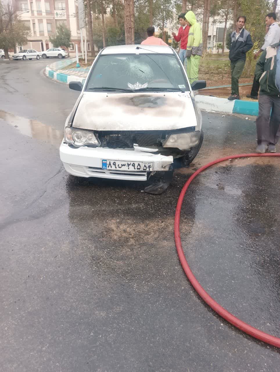 ماموران آتشنشانی یزد با حضور به موقع و اطفای حریق خودرو از گستردگی آتش و افزایش خسارتها جلوگیری کردند.
