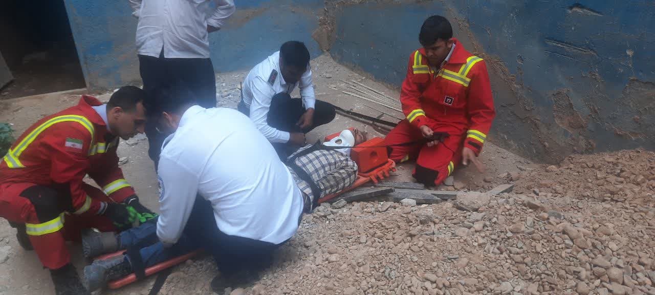 مصدوم در حین جوشکاری به پایین و داخل گود سقوط کرده و از ناحیه پا و کمر دچار مصدومیت شدید بود و آتشنشانان پس از تثبیت مصدوم بر روی برانکارد ، وی را به بیرون منتقل کردند.