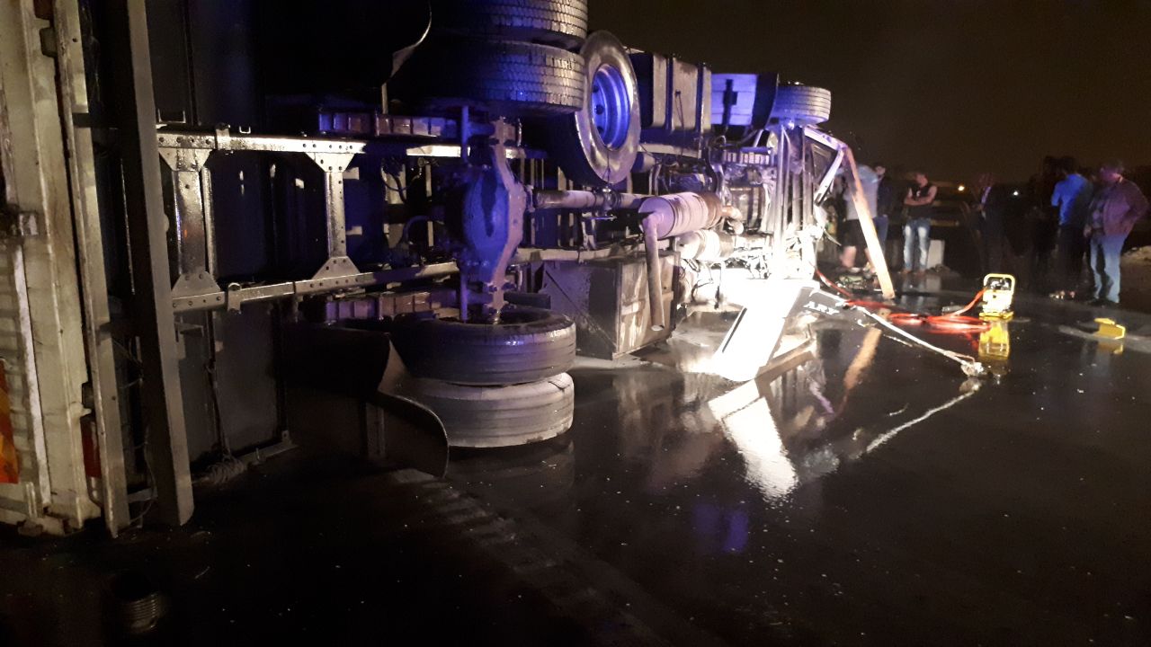 محمدرضا رحیمی معاون عملیات سازمان كه از ابتدا در محل حضور داشت گفت : یک دستگاه خودروي کامیون تک با 1 نفر سرنشین به علت نامعلومی از مسیر اصلی خود منحرف و در حاشیه جاده واژگون مي شود.