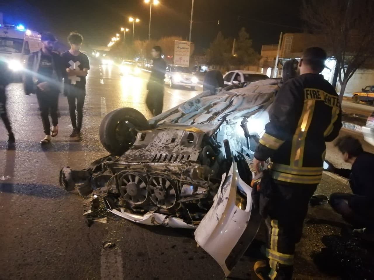 امدادرسانی آتشنشانان به خودروی واژگون در بلوار دهه فجر - سازمان آتشنشاني و خدمات ایمنی