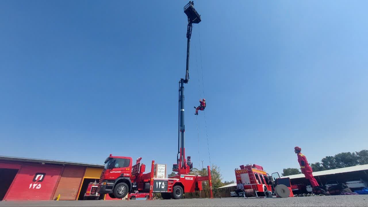تمرین عملیات صعود و کار در ارتفاع در ایستگاه شماره ۵ - سازمان آتشنشاني و خدمات ایمنی